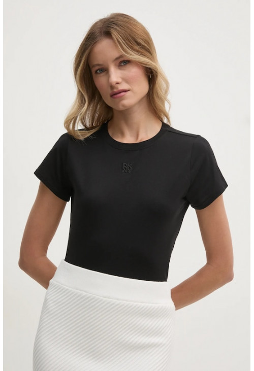 Футболка из коллекции Dkny выполнена из хлопкового, эластичного трикотажа. - Классический круглый вырез. - Крой regular. - Вышитый логотип.