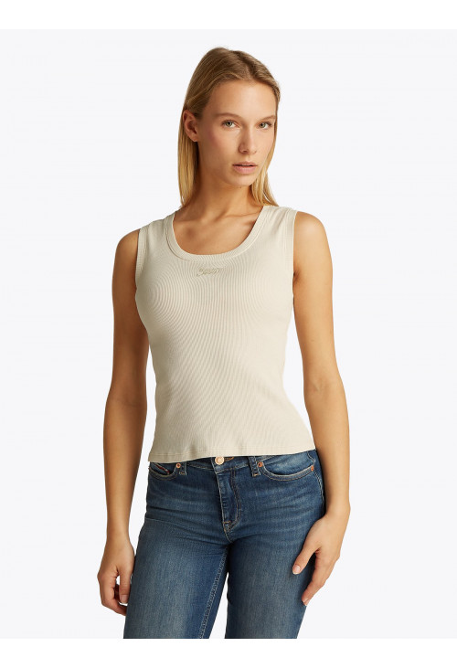 Идеально подходит как самостоятельная вещь или как базовый слой, эта ребристая майка имеет облегающий крой и логотип-надпись, подчеркивающий грудь.