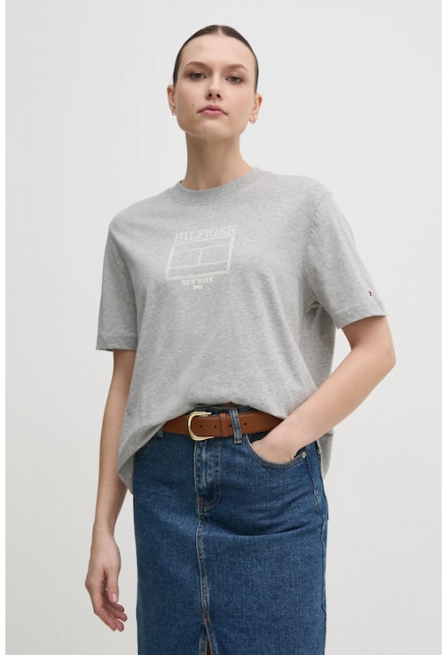 Дополните свою коллекцию многослойной одежды этой футболкой с круглым вырезом, на груди которой вышит контрастный флаг для фирменной отделки.