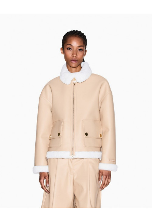 Эта короткая куртка из искусственной кожи с мягкой подкладкой из искусственной овчины — модная вещь, сочетающая в себе комфорт и современный стиль. Эта куртка современного кроя идеально подходит для прохладных дней, обеспечивая тепло и мягкость, не жертвуя при этом лёгкостью. Контраст между гладкой поверхностью и мягкой подкладкой создаёт привлекательный вид и ощущение уюта, идеально подходит для тех, кто ищет оригинальную и универсальную вещь.