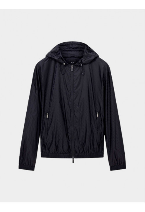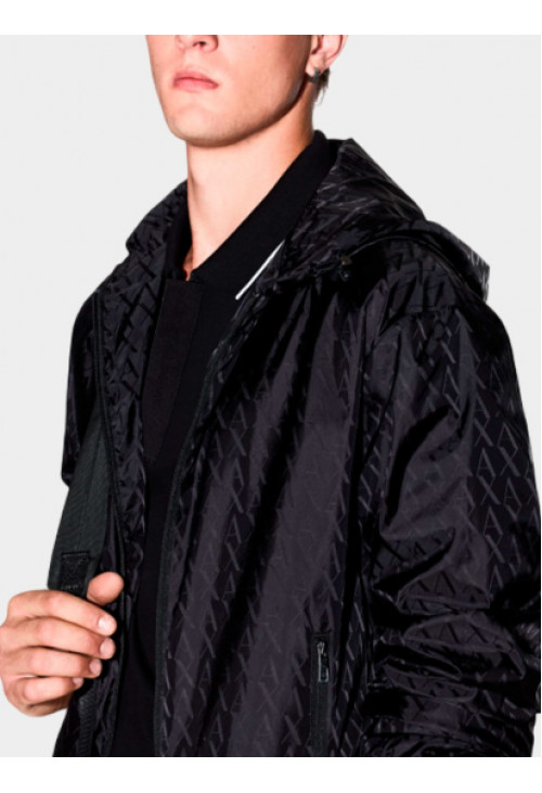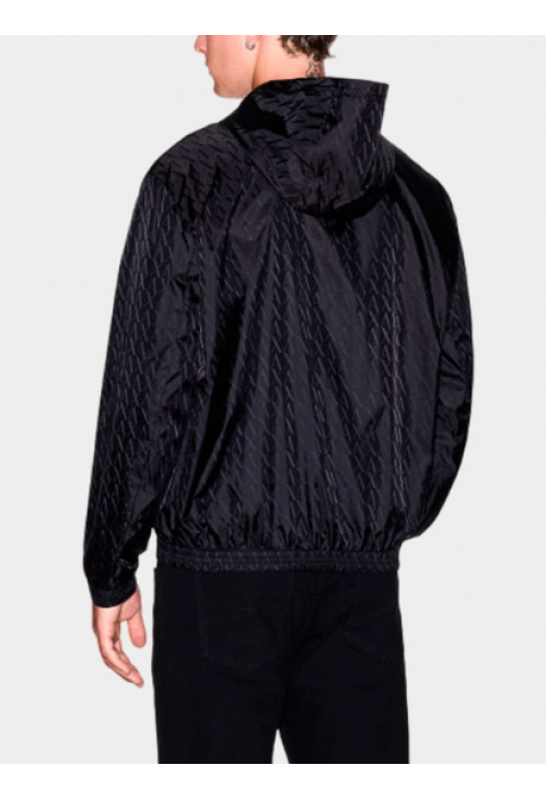 Куртка из коллекции Armani Exchange Особенности: -Выполнена из лёгкой технологичной ткани -Монограммный принт по всей поверхности -Регулируемый капюшон со стопперами -Застёжка-молния спереди -Боковые карманы на молнии -Эластичные манжеты и подол