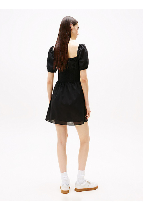 Это игривое платье идеально подходит для теплых дней благодаря легкой хлопковой вуали и изящным сборкам на талии.
