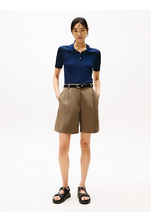 Добавьте индивидуальности вашим обеденным встречам с этими легкими шортами, которые имеют передние складки для дополнительного блеска.