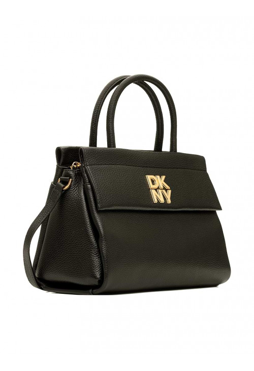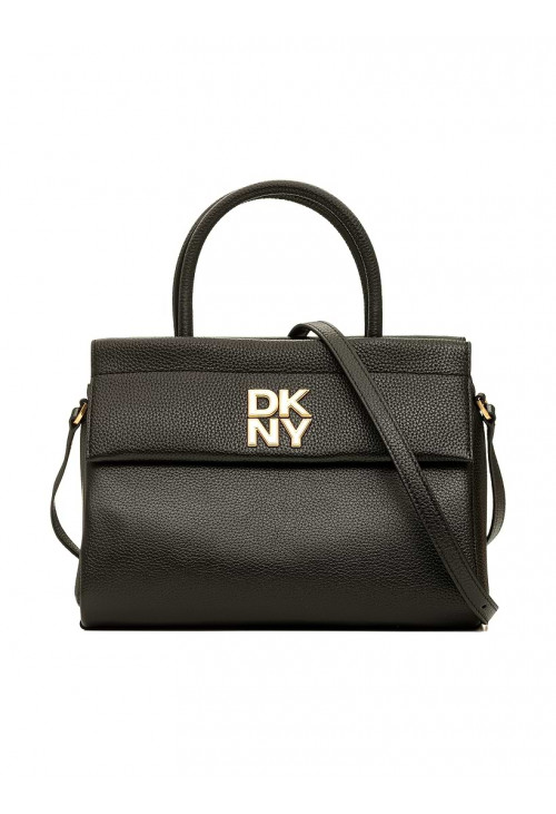 Сумка-тоут из зернистой кожи. Две закругленные ручки и регулируемый плечевой ремень сверху, один накладной карман с клапаном на магнитной кнопке и металлический логотип спереди, один прорезной карман сзади, два основных отделения на кнопках, центральный карман на молнии. Высота: 20 cm Ширина: 29.5 cm Глубина: 13 cm