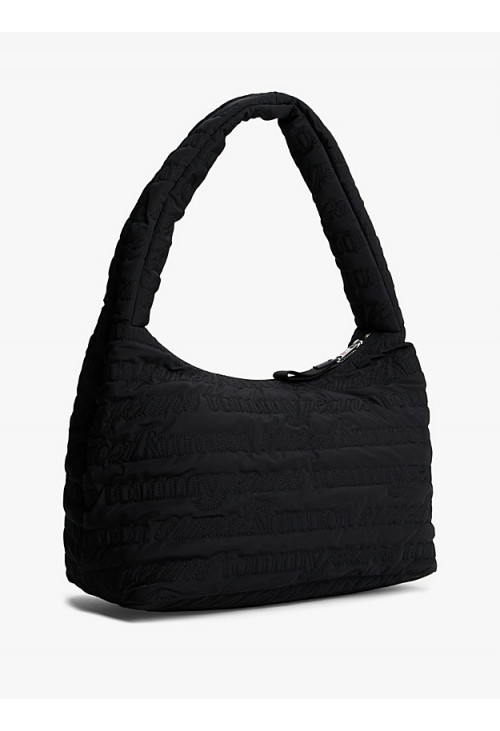 Добавьте ретро-нотку в свои образы с этой стеганой сумкой-хобо, украшенной вышитым логотипом в тон по всей поверхности, что придаст ей эффектный вид.