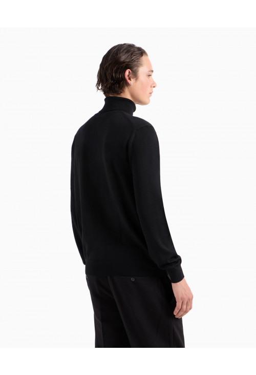 Этот тёплый и универсальный свитер станет идеальным зимним компаньоном. Он изготовлен из чистой шерсти, имеет высокий воротник, вышитый логотип на груди и ребристую отделку.