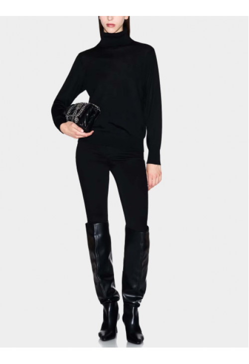 Водолазка из мериносовой пряжи. Строгий силуэт и роскошная текстура делают её невероятно универсальной: носите её отдельно для создания образа в стиле минималистичного шика, который не останется незамеченным, или как изысканную основу для смелого многослойного образа с блейзерами оверсайз или кожаными куртками. Сдержанный вышитый логотип в тон на груди добавляет культовый штрих, не перегружая образ.