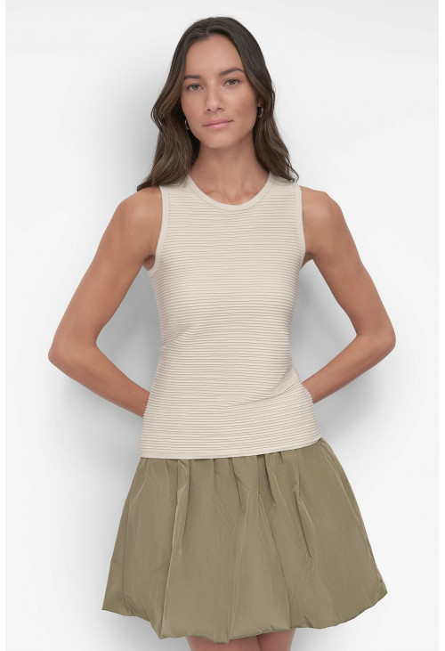 Эта легкая тканая майка от DKNY имеет едва заметную нашивку. Ее можно носить отдельно или в сочетании с любимой рубашкой на пуговицах.