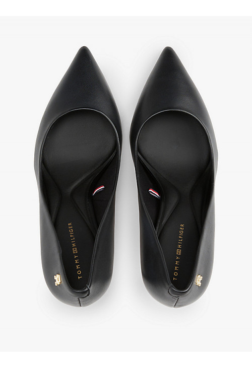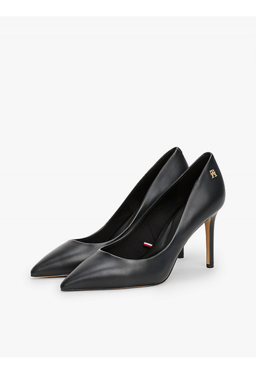 Шагайте уверенно в этих туфлях с острым носком и высоким каблуком, изготовленных из роскошной кожи с полированной пластиной с монограммой TH для дополнительного стиля.